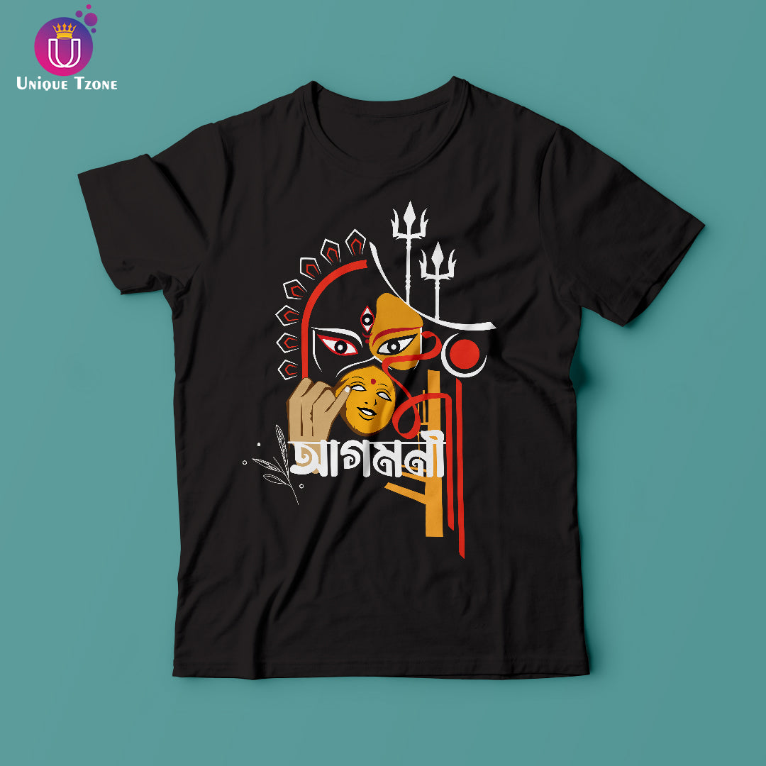 Agomoni Maa Bengali Round Neck Half Sleeve Cotton Tshirt