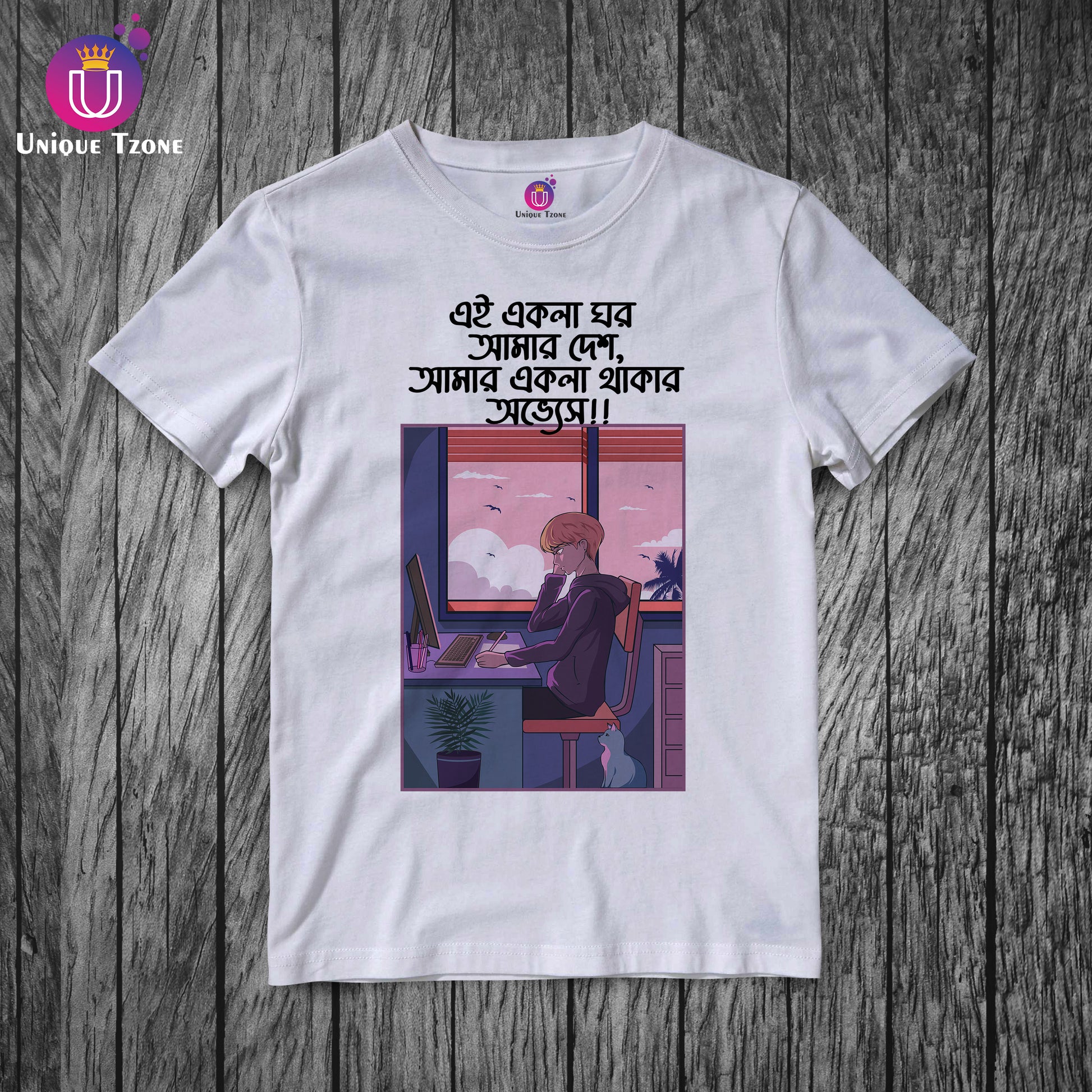 Ai Ekla Ghor Amar Desh Bengali Graphics Men Round Neck Pure Cotton Tshirt
