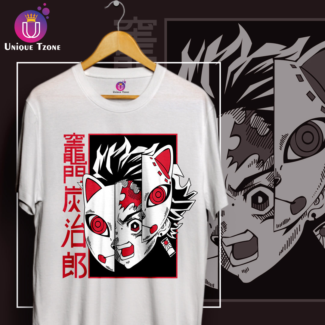Anime Graphics Slayer Face Of Demon Round Neck Cotton Tshirt
