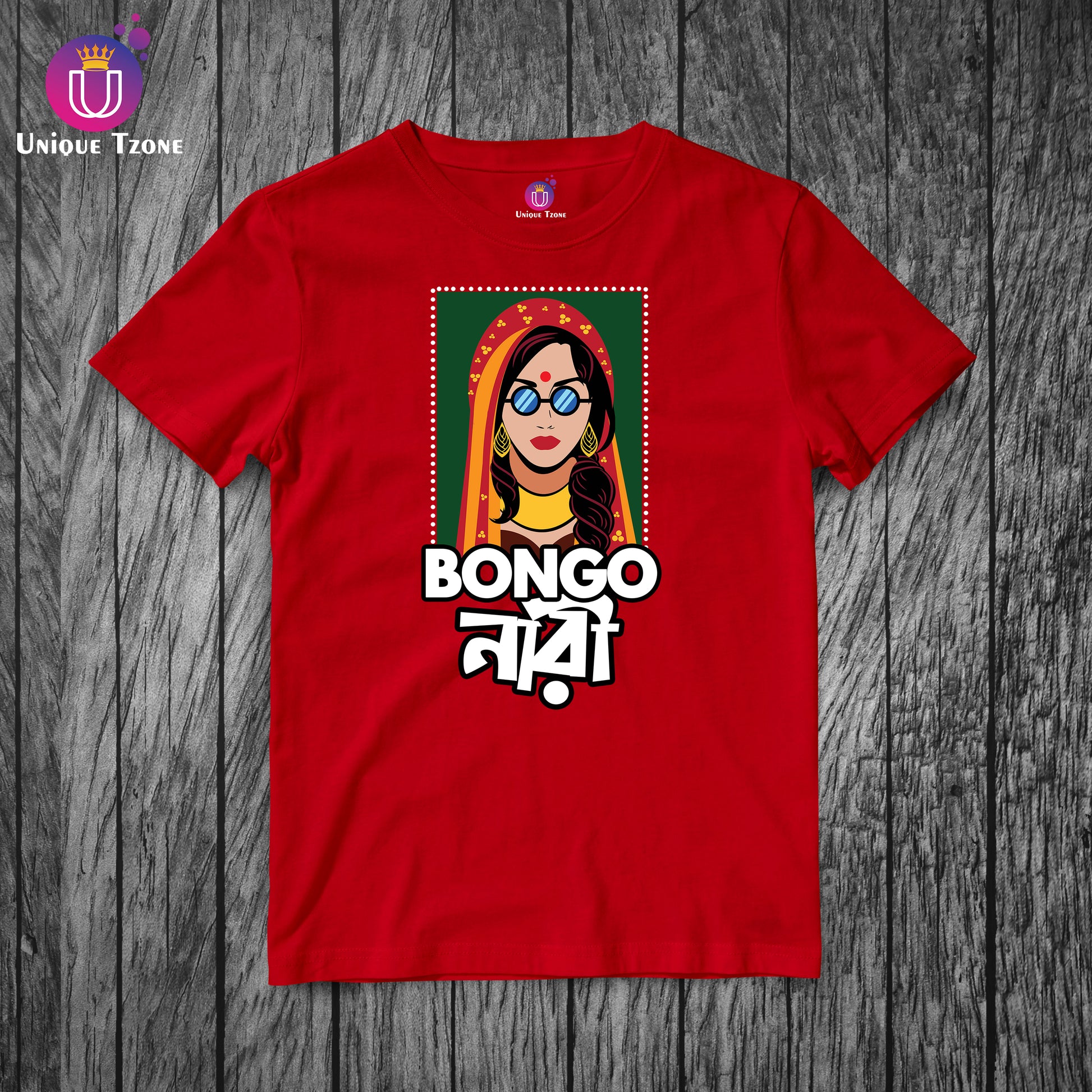 Bongo Nari Bengali Women Half Sleeve Round Neck Pure Cotton Tshirt