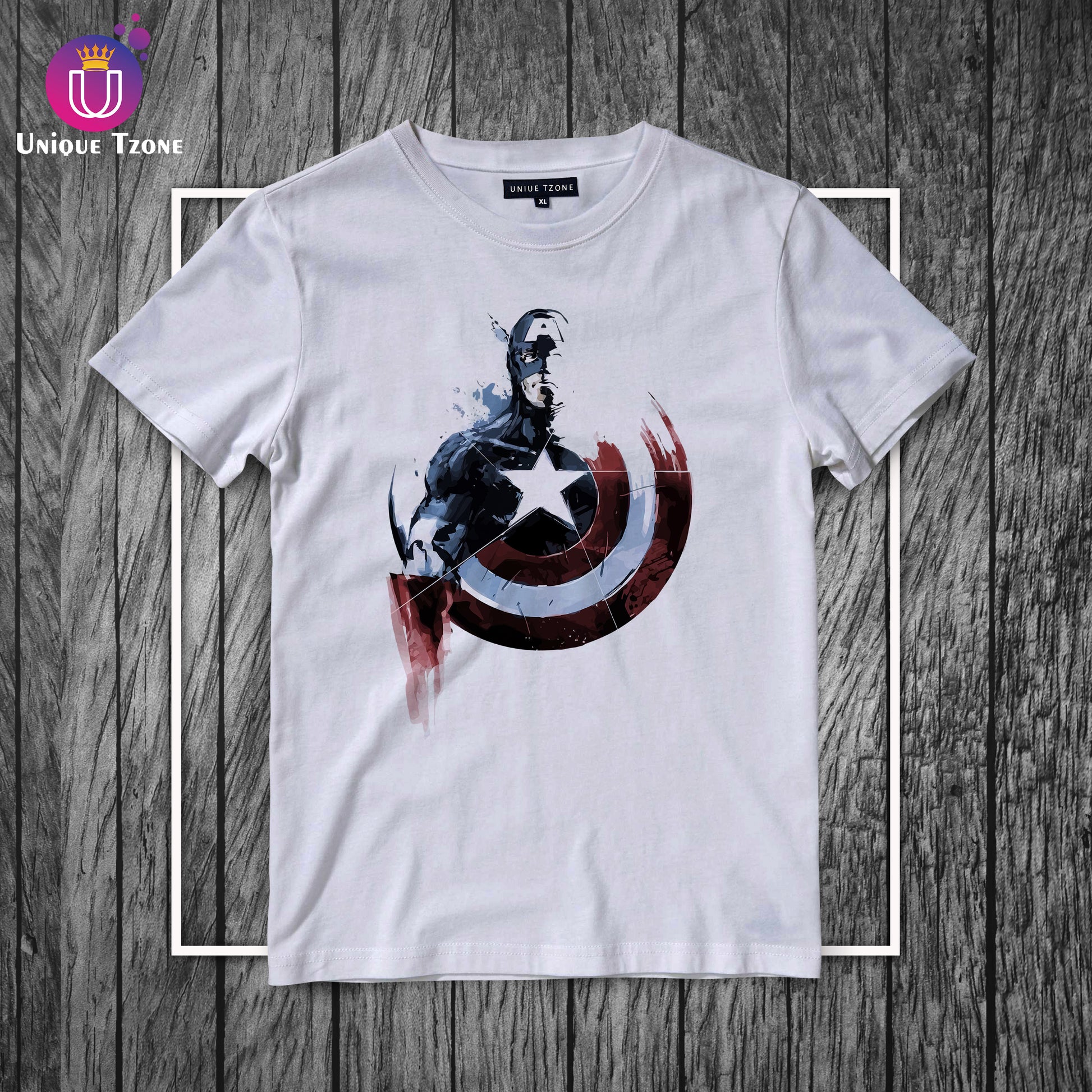 Captain America White Round Neck Half Sleeve Round Neck Marvel Cotton T-shirt
