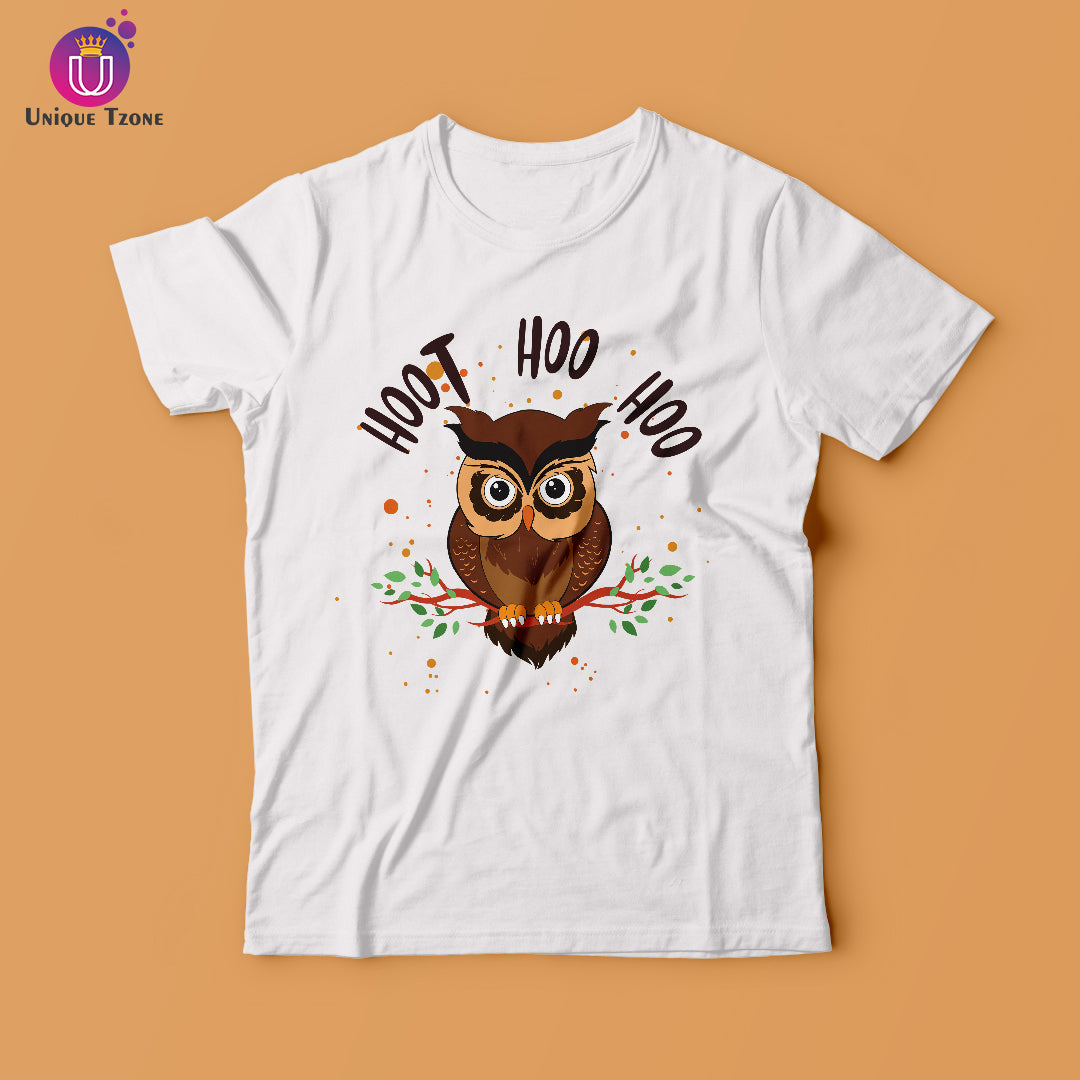 Hoot Ho Hoo Cute Owl Half Sleeve Round Neck Cotton T-shirt