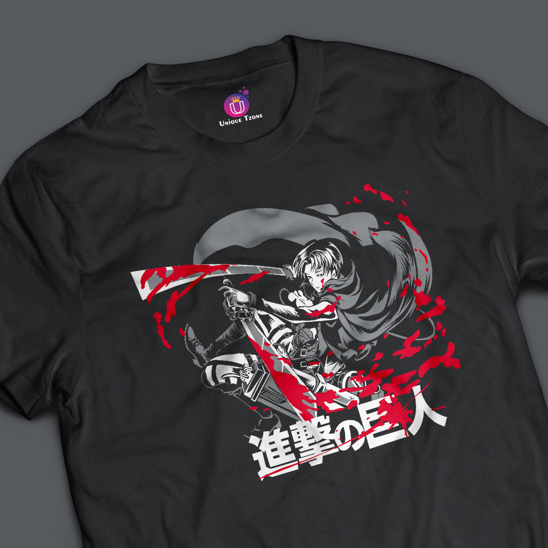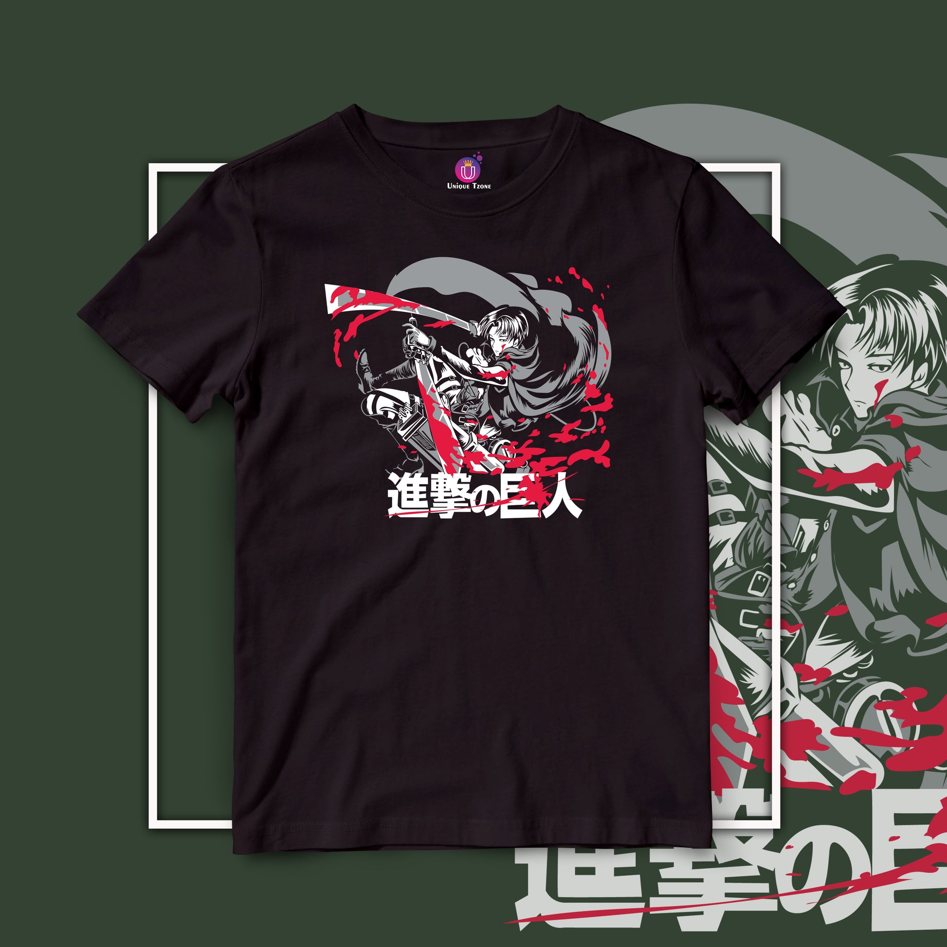 Levi Ackerman With Sword Attack On Titan Half Sleeve Unisex Anime Tshirt