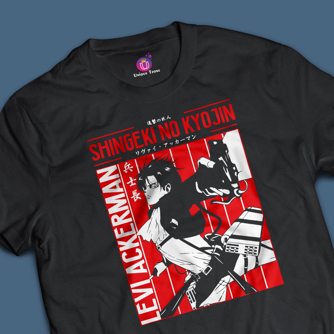 Levi Anime Graphics Attack On Titan Half Sleeve Unisex Round Neck Cotton Tshirt
