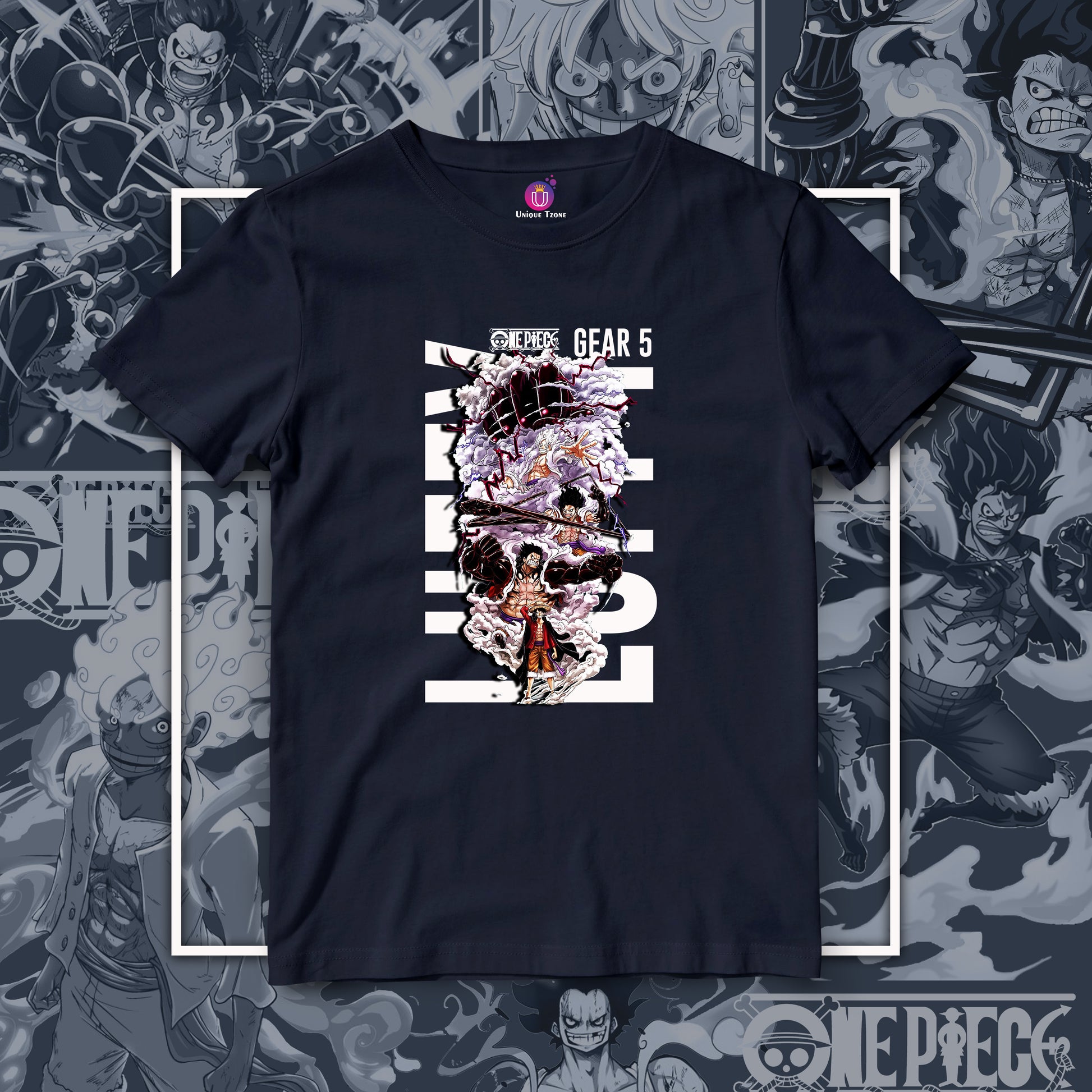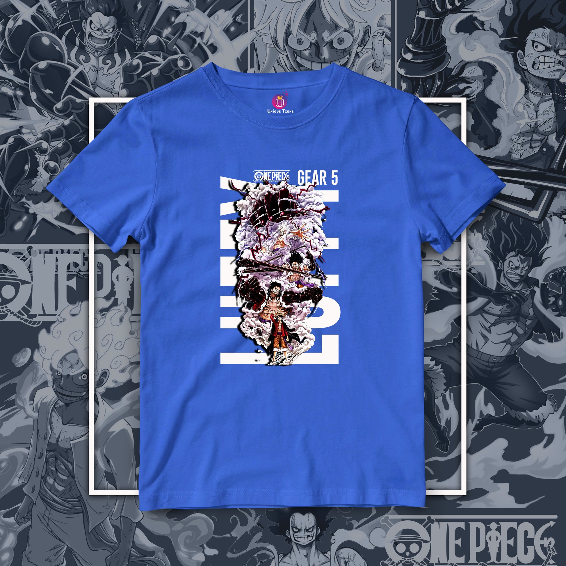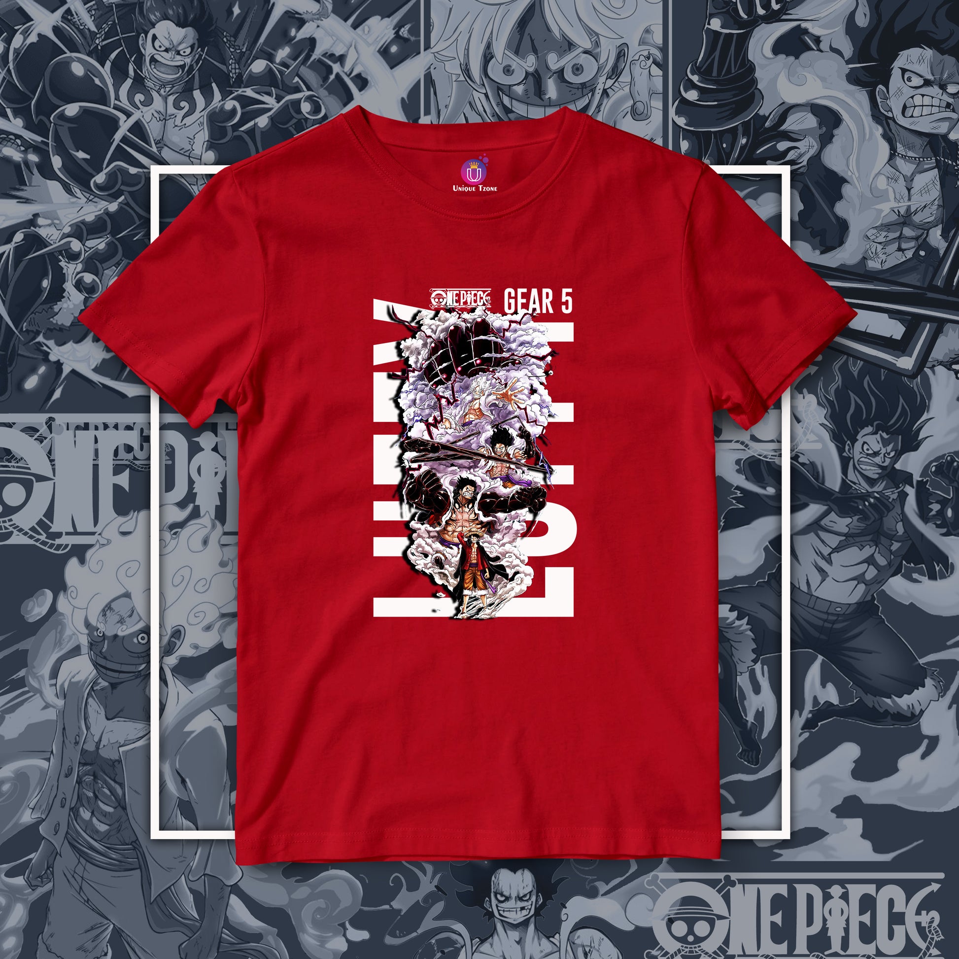 Luffy One Piece Gear 5 Anime Graphics Half Sleeve Round Neck Unisex Cotton Tshirt