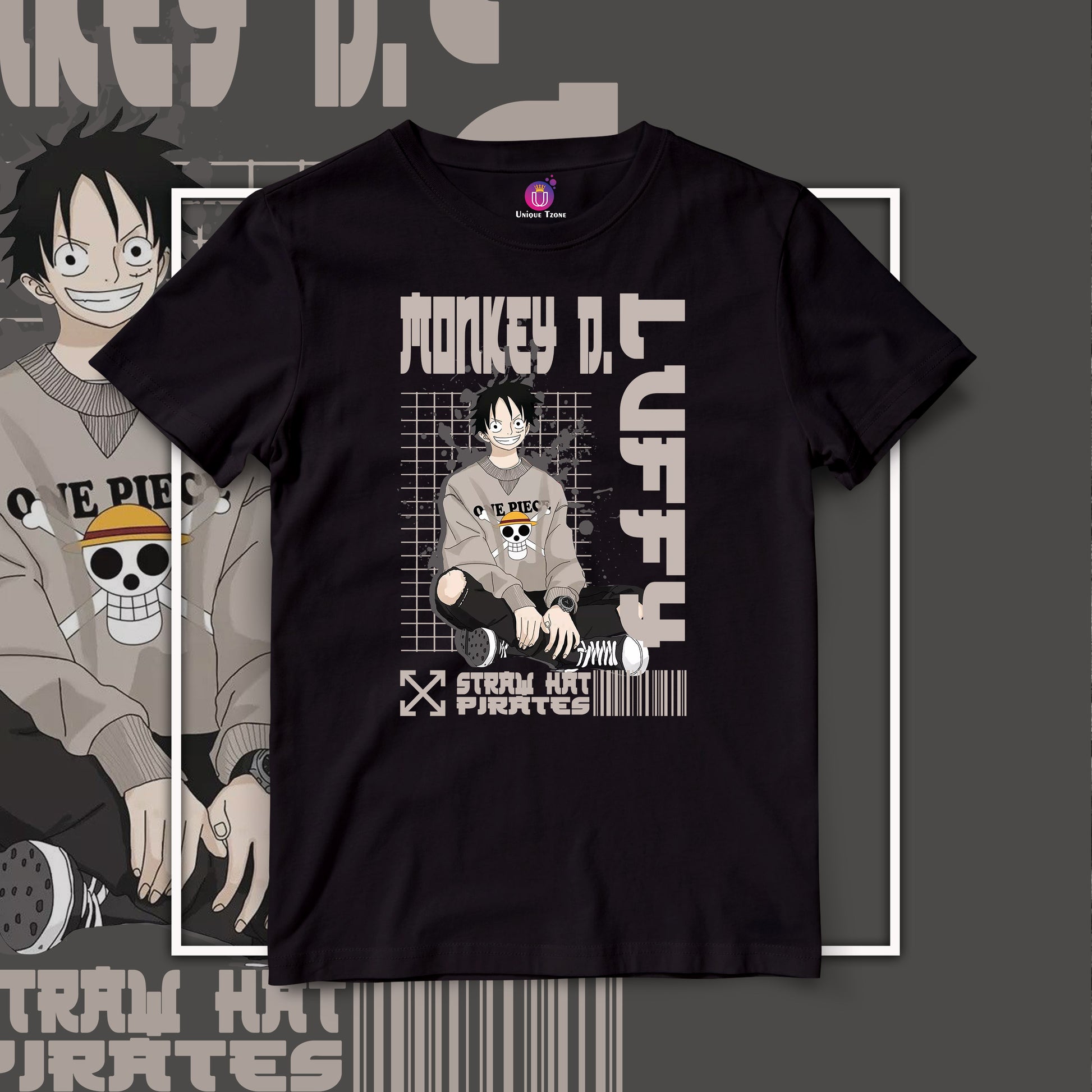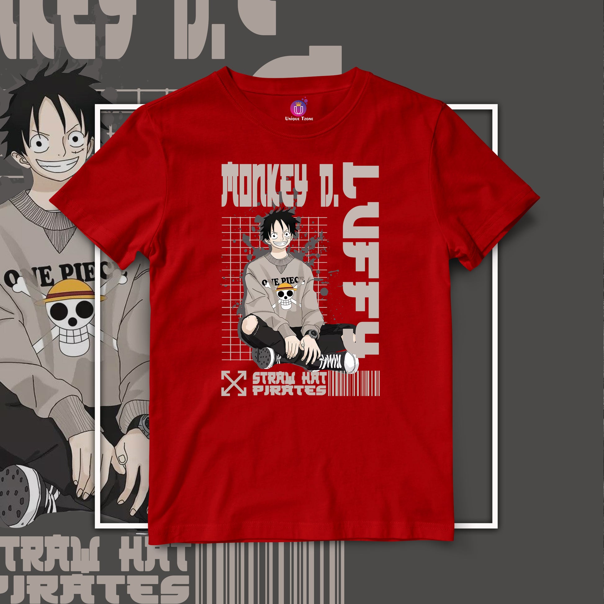 Modern Charm Monkey D Luffy Anime Graphics Half Sleeve Unisex Round Neck Cotton Tshirt
