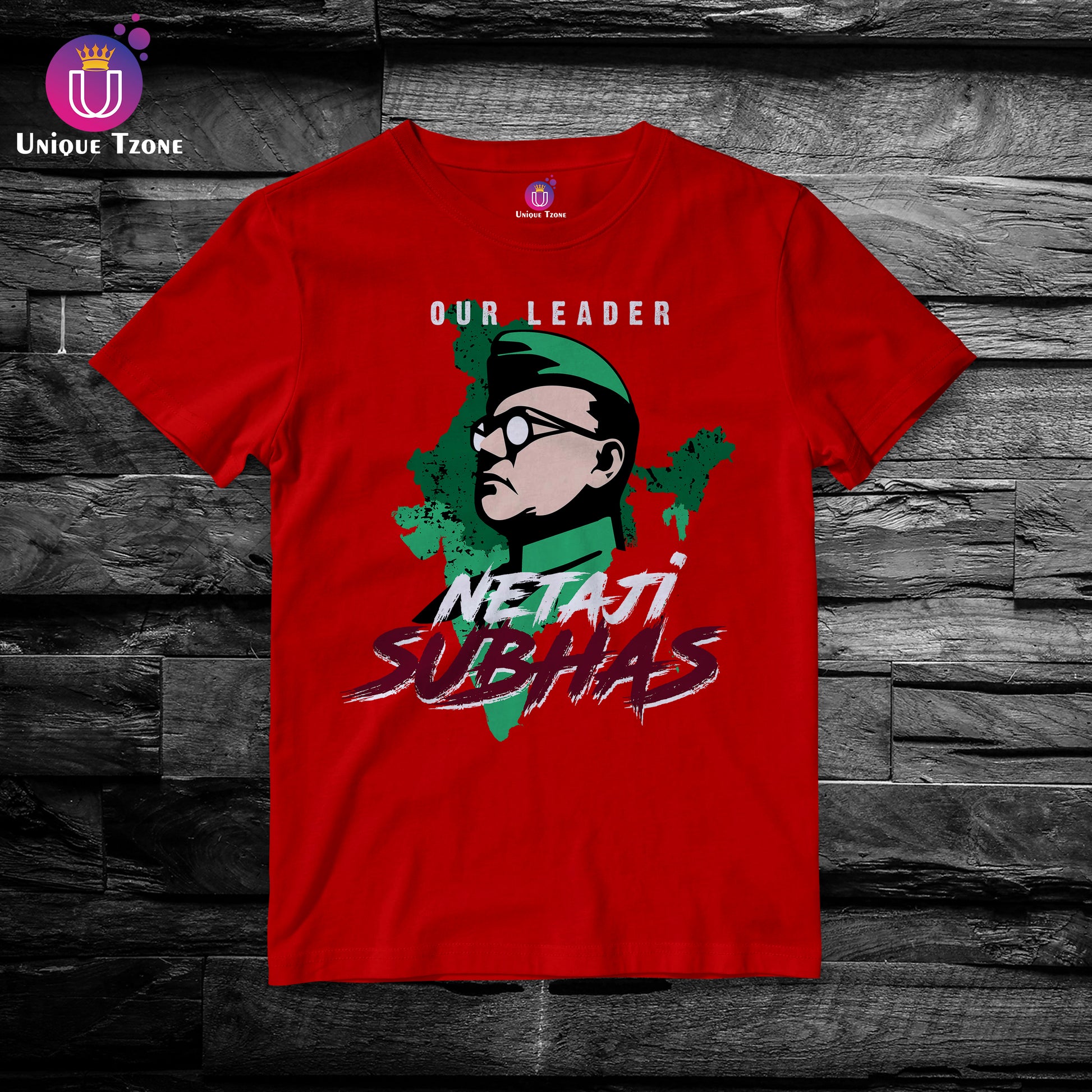 Our Leader Netaji Subhas Round Neck Half Sleeve Unisex Cotton Tshirt