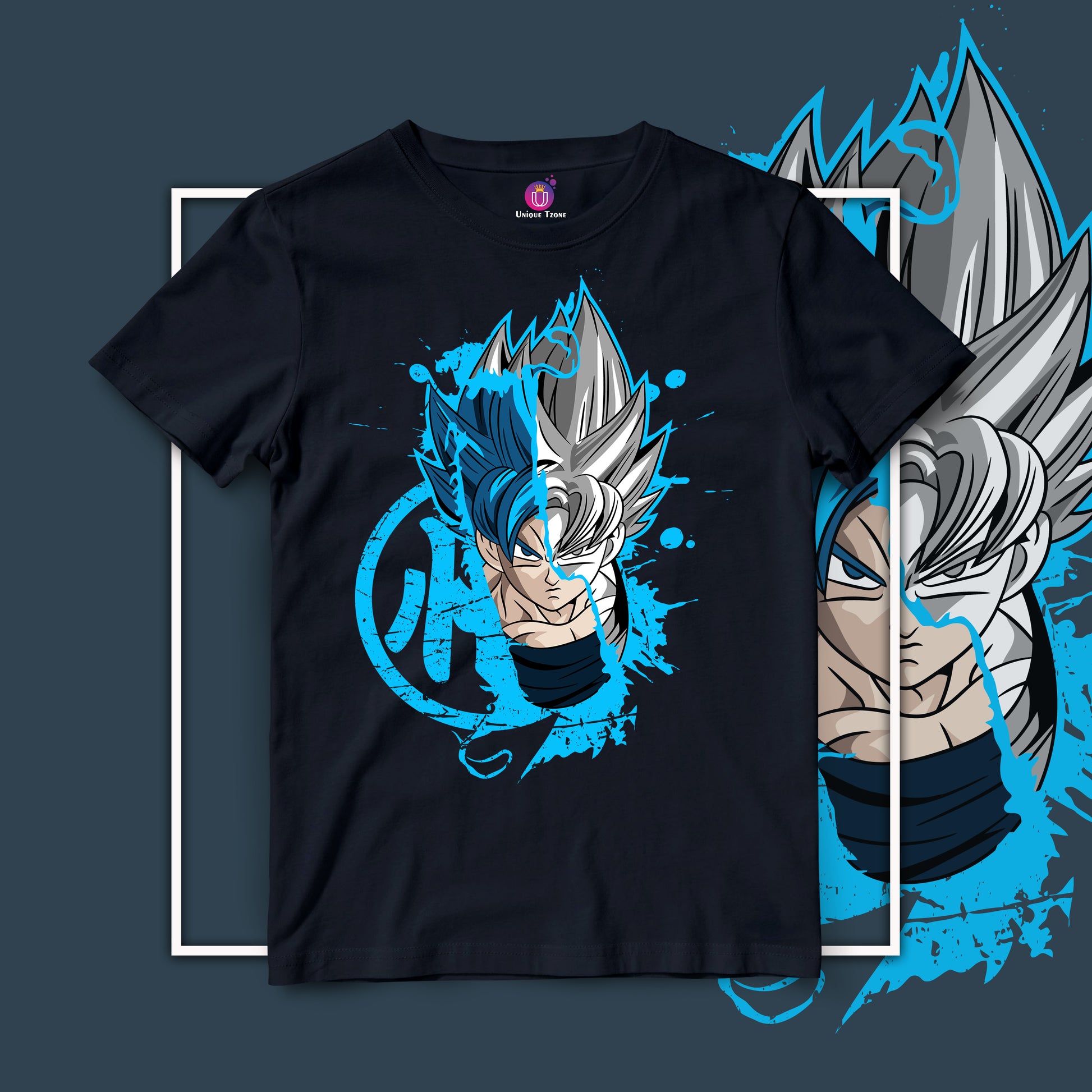 Son Goku Action Mood On Dragon Ball Z Anime Graphics Half Sleeve Unisex Round Neck Cotton Tshirt