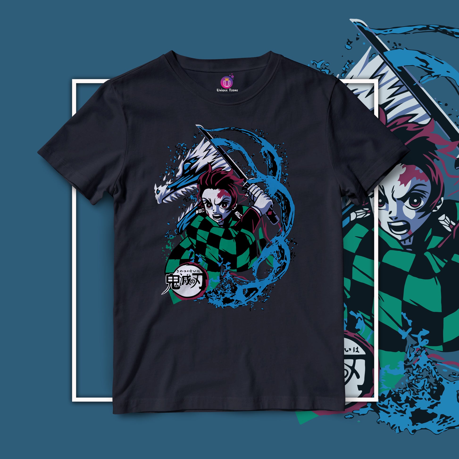 Tanjiro's Water Form Style Demon Slayer Half Sleeve Unisex Round Neck Anime Tshirt